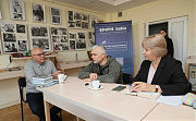 Про каву — це не образно, а насправді, так і спілкування у довільному форматі простіше відбувається. Ми провели гостя до редакційного музею, де зазвичай і проводимо зустрічі. Показали і прокоментували всі зібрання — перший номер «Вечірньої Одеси», датований 1 липня 1973 року, фотоматеріали про засновника видання заслуженого журналіста України Бориса Дерев’янка, його особисті речі, книги, видані редакцією, спортивні нагороди журналістських команд.