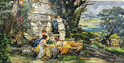 — Ці копії я зробила, — розповідає Богдана, — коли їздила до Австрії розписувати будинок, де і отримала приватне замовлення на ці картини для дому в Німеччині. Мені дозволили показати їх на моїй персональній виставці перед відправленням. Це перші такі великі роботи, які я писала на полотні (три метри на півтора), та ще й олією (зазвичай користуюся акрилом, олійний живопис робила у значно меншому форматі). Я обійшла багато музеїв та бібліотек, аби скопіювати не лише сюжет, а й манеру письма Генріха Семирадського. Він писав античність, йому це дуже подобалось. Семирадський багато часу провів у Римі, де тішився античністю та яскравим природним освітленням. Художник мав чимало регалій, для мене робити копії його картин було викликом.