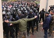 В 12.28 схватка разгорелась не на шутку. А в 12.29 активисты попытались остановить натиск полиции с помощью порошкового огнетушителя.