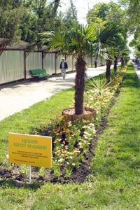 Экзотически-субтропический вид приобрела главная аллея «Аркадии» после совместной акции Министерства окружающей природной среды Украины, Одесской областной организации партии зеленых Украины при поддержке компании «Ваш сад» и горисполкома, которая прошла в пятницу, 13 апреля.