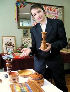Саша Залесский (10-Б) и Кирилл Ельский (9-Г) представили деревянные поделки. Ребята уже участвовали в областных олимпиадах по труду.