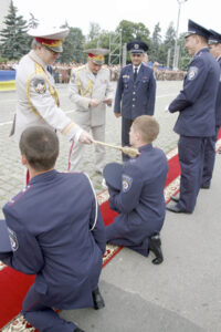 Торжественную церемонию провели ректор Одесского государственного университета внутренних дел генерал-майор милиции Анатолий Волощук и начальник департамента кадрового обеспечения Министерства внутренних дел Украины генерал-майор милиции Юрий Казанский. Митрополит Одесский и Измаильский Агафангел благословил молодых правоохранителей на успешную службу и окропил их святой водой.