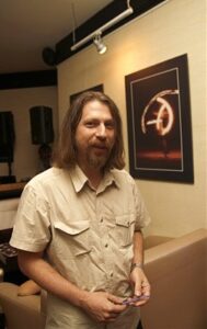 Создать снимок, где на темном фоне что-то горит, вспыхивает, напоминает пылающий иероглиф и вообще некие огненные письмена, возвещающие о чем-то неизбежном, — непростая техническая задача. Но тем ценнее художественный результат. На стенах арт-кафе пылают «Бродячий цирк», «Фламенко», «Огненный демон», «Иероглиф» и другие работы Ясносекирского.