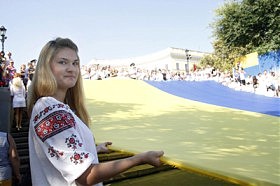 В рамках «Вышиванкового фестиваля» на Потемкинской лестнице был развернут гигантский флаг Украины. Впервые такая акция была проведена в 2009 году, тогда длина флага была 18…