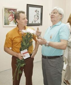 На вернисаж прибыл из Нью-Йорка известный художник, бывший одессит Юрий Горбачев, коллега и коллекционер в одном лице — он стал покупателем написанной на глазах у зрителей картины Делиева «Адам и Ева в позе лотоса».