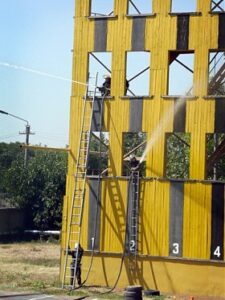 Тренировки у спасателей самые разные, в зависимости от функций, возлагающихся на них при чрезвычайных ситуациях. К примеру, боевое развертывание, работа с лестницами или со спасательными веревками. Каждое подразделение имеет свою специальную технику и отрабатывает нормативы с ее привлечением. «В распоряжении нашей части, — объясняет Андрей Задачин, — такая техника: автоцистерна АЦ-40, автомобиль газо-дымозащитной службы, пожарная насосная станция, автомобиль воздушно-пенного тушения, автомобиль порошкового тушения».