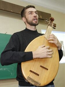Историк и кобзарь Алекса Губский прочитал лекцию об истории украинского кобзарства и исполнил казацкие песни на инструменте, который по кобзарской традиции изготовил сам.