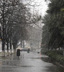 Вчера с утра шел проливной дождь, а потом он перешел в мокрый снег. Гидромет передал штормовое предупреждение, а ГАИ города в связи со сложными погодными условиями призвало водителей быть осторожнее на дорогах.