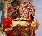 В сказочном шоу принимают участие ведущие артисты театров нашего города. Начнем с Деда Мороза, народного артиста Украины Владимира Фролова — море обаяния плюс одесский шарм, он прибыл явно не из Лапландии… Царевну-лягушку играет солистка театра музыкальной комедии имени Михаила Водяного Ирина Ковальская, очаровывая не только серебристым голосом, но и отточенной пластикой, такая и впрямь пойдет в пляс, взмахнет рукавом — и произойдет чудо… Увидев ее в обличье красной девицы, а не зеленой лягушки, Царь восклицает: «Квакушка, а как же ты так изменилась?». Василиса отвечает: «Я стала другой, потому что влюбилась!» Красота женщины неразлучна с умением любить и с мудростью. А Ивана-царевича играет профессиональный танцовщик Дмитрий Черняев — настоящий русский красавец и богатырь.