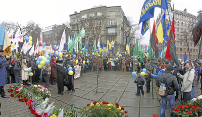 А представители одесской оппозиции и националистических сил через час провели объединенный митинг возле памятника Т. Г. Шевченко.