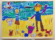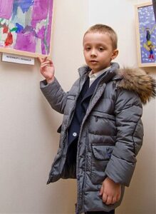 Очаровательный малыш с круто вылепленными ямочками на щечках учится в арт-студии Клавдии Боголюбовой всего полтора года, но уже успел получить золотую медаль на конкурсе детского рисунка в Польше и специальную награду — диплом на Пушкинском конкурсе детского рисунка в России. На досуге он рисует космос, звезды и персонажей любимого фильма «Аватар», а в студии — цветочно-фруктовые натюрморты, море, корабли, персонажей книг, которые читает на занятиях Клавдия Михайловна. Например, Петю и Гаврика из повести Катаева «Белеет парус одинокий», героев произведений Паустовского.