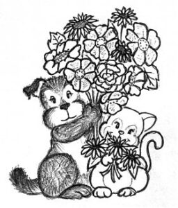 Зайца серого с цветами