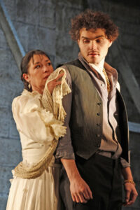 Куда более органичны помещичья пара Бондыревых (заслуженная артистка Украины Лариса Коршунова и Михаил Дроботов) и одна из воспитанниц Сарытовой, озорница Настя (Ольга Салтыкова). Вторая, Ольга (Елена Ященко) при всей яркой красоте уж до того правильна, суха, скучна и жестка в общении, что с трудом понимаешь влюбленного в нее щеголя, богача Лизгунова (Сергей Юрков).