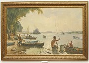 Ну, а что она имела в виду под «немасштабностью» картин Гавдзинского, посвященных, казалось бы, такой громкой и выигрышной в те годы «производственной» тематике? Что имелось в виду, догадаться нетрудно: видимо, Альбин Гавдзинский не был склонен следовать конъюнктуре соцреализма, он был искренним и камерным по дарованию художником, и даже «производственные» впечатления передавал на своих картинах как личные переживания, непафосно и вдумчиво. Его более всего интересовала природа — и человек в природе. Даже если человек нахально именовал себя ее «преобразователем». «В тех маленьких работах, — уточняет Елена Михайленко, — можно увидеть город, реку, плывущую лодочку. И замок Трубецкого, который, к сожалению, не сохранился, — успел Альбин Станиславович запечатлеть на своих полотнах этот замок!».