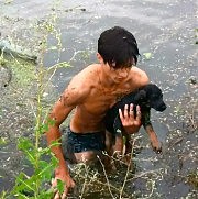 В тот день Руслан в мутном потоке воды на улице Балковской увидел двух беспомощных щенков, и, не раздумывая, бросился им на помощь. К несчастным животным нелегко было добраться: не достав дна, парень, разгребая мусор, пустился вплавь. К сожалению, одному из щенков уже нельзя было помочь, но другого он таки спас. Теперь у щенка будет настоящий, готовый всегда его защитить, хозяин, а вырастет щенок — хозяина в обиду не даст: животные всегда помнят добро и платят сторицей.