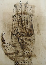 Истинным искусством он считает духовное искусство, а все остальное, по его мнению, скорее можно отнести к дизайнерским поискам, дело тоже нужное… И даже такие, казалось бы, светские работы, как серия графики «Стихи после слов», излучают эманацию святости, так как полустертые письмена, когда вглядываешься в них, напоминают кириллицу древних молитвословов, шепча о чем-то вечном, неизбывном. А что касается канонических работ, то их мастер тоже выполняет, заказывают церкви, монастыри на Афоне, от икон до мозаики. Даже выставки там проводит — с благословения настоятелей.