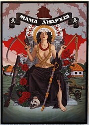 Герои постеров Андрея Ермоленко — «Мама Анархия», Нестор Махно, боец его знаменитой «Еврейской роты». Особняком стоящие две работы, поясняет автор, имеют прямое отношение к направлению «Жлоб-арт», ведь этих героев очевидно интересуют только бренды, пусть даже поддельные, это обобщенные образы жлоба и жлобихи (старые одесситы сказали бы посочнее: «жлобехи»). Понятие жлобства, безусловно, заслуживает глубокого исследования, чем с удовольствием занимаются украинские художники, «Жлоб-арт» как направление в живописи создал Иван Семесюк, а вдохновляет на него окружающая действительность, вплоть до комнатных собачек в брендовых комбинезончиках, ибо и это суть проявление жлобства. И все-таки анархо-искусство привлекает Андрея гораздо больше.