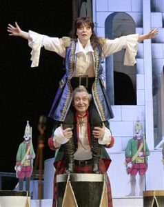 Этот непутевый сынок… Что возникает в памяти при словах «Павел Первый»? Ага: прусская казарма и амбициозная тупость, и никакой Мережковский этой хрестоматии не переписал. Надо сказать, у создателей спектакля получился тут едва ли не самый ярко-гротескный образ: ария императора Павла (Руслан Рудный) — без преувеличения, самый смешной и колоритный из музыкальных номеров спектакля, да и весь ролевой рисунок продуман и исполнен в высшей степени выразительно.