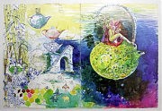 «Дмитрий всегда развивал собственный мир идей, эмоций и впечатлений, — пишется в аннотации к выставке. — Создаваемые им чайники подобны людям — внешняя оболочка сложна и достаточно статична, а внутри находится волшебный, кипящий мир, в котором в результате сложных взаимодействий возникает нечто новое, потустороннее. Коллажи возникают послойно, параллельно разворачиванию и изучению Карты жизни, и являются аутентичными дневниками всего существования Автора. Его произведения — это послания самому себе, в собственный внутренний мир, ответ сигналам оттуда. Это изучение теней мыслей и их теней…».