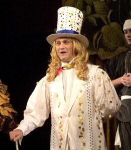 Однако простак простаку рознь, в исполнении Лукашенко всегда присутствует питерский шик, элегантность, умение носить фрак у него в крови, это всегда какой-то «фрачный» простак, вот как Бони в «Сильве»: канкан, ослепительная улыбка, «и я влюбляюсь снова в вас каждый раз, хоть на час!». Часто у этого «простака» совсем непростая грустинка в глазах и даже стальной блеск проскальзывает. Невозможно удержаться в рамках одного амплуа, творчество, как и жизнь, вариативно! Конечно, его герои всегда смотрятся роскошно — а зачем уродовать, красоту ценить нужно, оформлять достойно. Элегантный, как рояль, мафиози Спаттс Палаццо в спектакле «В джазе только девушки», с иголочки одетые Айзенштайн и Фальк в двух постановках «Летучей мыши» и стильный до неправдоподобия Пушкин из мюзикла «Граф Воронцов» (неважно, что во время одесской ссылки поэт одевался более чем небрежно, важно, что артист заставляет поверить, будто его герою 24 года!).