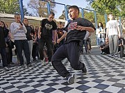 Молодежи явно не терпится поплясать, энергия распирает, музыка заводит — разминаются на ходу. Наконец наступает момент, которого все ждали — тут же на площадке начинают соревноваться в мастерстве хип-хоперы и мастера брейк-данса. Гости фестиваля — MC Flipper Hbtc (HBTC), DJ Blush (QSC) и другие наблюдают за происходящим.