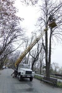 В конце ноября сотрудники КП «Одессгорсвет» убирали с деревьев на Приморском бульваре пришедшие в негодность провода.