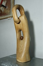 Скульптор Юрий Жигалёв — уроженец России, пришел в изобразительное искусство через музыку. Юрий Борисович окончил в Одессе музучилище и консерваторию, в начале 70-х подружился с кругом одесских художников-нонконформистов, и скульптура по дереву стала его второй профессией. Время создания его маленьких афоризмов в дереве — с 1993-го по 2013 год, есть и раскрашенные скульптуры («Танец», «Балет», «Военный объект»), и сохранившие естественный цвет и фактуру исходного материала («Объект с цепью и кубом», «Фигура», «Три мудреца»). Работая в мелкой пластике, скульптор лелеет мечту о большом масштабе, но для интерьера, не для улицы, по его собственному признанию, слишком удручает состояние тротуаров, не радуют обветшавшие фасады, как говорится, нет среды…