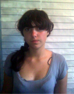 Приметы: на вид 14—16 лет, среднего роста и телосложения, волосы темные средней длины, глаза карие. Одежда: черно-серое платье, черный жилет из искусственного меха, белые босоножки.