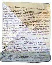 «Около 3-х лет вы живете без вестей, вы не знаете моего местонахождения, и вот судьба заставила услышать мой голос. Жизнь моя прошла с большими переменами во времени, в наружности, вообще в моем облике человека. Каждый день, начиная с 18 июля 1941 года, не давал мне покоя, где вы находитесь, какова жизнь и вообще ваша судьба».