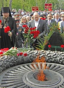 По традиции к монументам Славы в этот день возлагали цветы — на площади 10 Апреля, на Аллее Славы, на Мемориале 411-й береговой батареи.
