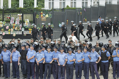 Затем, получив команду, натянули маски и стали разбирать погребальные венки. Попытка номер один — прорваться с этим «подарком» к консульству. Побежали верхом, где милицейский кордон был жидковат. Ошиблись. За первой цепью милиционеров оказалась вторая. Бросились обратно. Милиционеры пытались их задержать, но ребята оказались верткими. Всем из них удалось вернуться на исходные позиции.