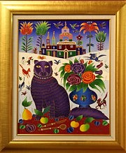 Африканские и балийские сюжеты, русская зима, мудрые коты и шаловливые обезьяны предстают в роскошных материалах, ведь авторская техника Горбачева предполагает использование золота, бронзы, эмали. Сплав наивного народного искусства, ювелирного шика и мастерства, труд автора здесь незаметен, в каждой картине художник остается в первую очередь артистом, указующим человечеству путь в рай, где нет забот, раздоров, но есть радость жизни. Очень вовремя и кстати — постоять у таких произведений, отдохнуть душой и впустить в нее немного «фирменного горбачевского солнца»…