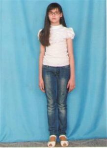 Приметы девочки: рост 155—165 см, худощавого телосложения, длинные светлые волосы, серые глаза. Была одета в серую пайту с зеленой надписью, серые бриджи с лампасами, синие шлепанцы.