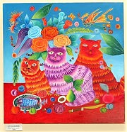 — Несколько котов на картине Юрия Горбачева казались мне простыми, примитивными, а когда стала делать копию, выяснилось, что каждый усик состоит из мазков четырех цветов. Так что эта простота именно кажущаяся. Захотелось мне к моим именинам, к выставке написать пятьдесят картин, чтобы в нашей Украине наступил мир. Мне удался мой замысел — значит, мир будет, — надеется Надежда Маркова.