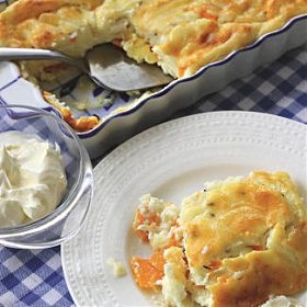 500 г творога, 1 кг тыквы, 3/4 стакана манной крупы, 2 стакана молока, 4 яйца, 0,5 стакана сахара, 3 ст. л. сливочного масла, щепотка тмина,…