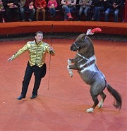 «В цирке Чинизелли есть крокодилы, львы и тигры, но сейчас они заняты в других шоу, — пояснил Дмитрий Зельцер. — Наш цирк прокатывает сейчас одновременно три программы. Публика покажет нам, насколько самоокупаемы наши проекты. Цирк — искусство затратное. Например, одна лишь бегемотица съедает в день 50 килограммов яблок, столько же моркови, 30 килограммов свеклы. Для лошадей нужно в день не менее 120 килограммов сена. Переезды — это значит, цирк не работает, но животные должны есть каждый день. И люди тоже. И автомобили: дизельное топливо».
