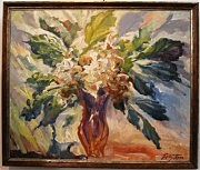 Излюбленный Ольгой мотив птиц. Чайки — и охапка фантастических цветов. Стремительно круглящийся горизонт (в одесской «Грековке» ведущим педагогом Ольги был замечательный Орест Слешинский), золотое мерцание водной глади…