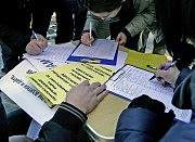 Участники митинга собрали подписи под документом, он передан чиновникам вместе с символической «желтой карточкой», которую, по аналогии с футболом, предъявили городским властям.