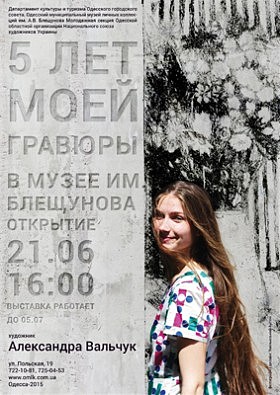 В выставочном зале Одесского муниципального музея личных коллекций им. А. В. Блещунова (ул. Польская, 19) с 21 июня представлена выставка Александры Вальчук «Пять лет моей…