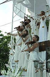 В память о прошедших годах в воздух были выпущены двести шариков в форме золотых звезд. Нынешний владелец «Виллы Отрада» Петр Титиевский получил из рук «предшественника» купеческий костюм и пообещал свое владение «хранить, беречь, развивать». Режиссер театрализованного празднества Анна Чернобродская привлекла к сотрудничеству именитых местных артистов (народных артистов Ольгу Оганезову, Владимира Фролова, Олега Школьника и других). В разгар празднования Николас Холайджоглу спросил, есть ли среди гостей влюбленные, — таковые нашлись. Счастливчики Артем и Ксения получили напутствие от прожившего 30 лет в благополучном браке хозяина виллы, шампанское (в фужере невесты было обручальное кольцо — так когда-то Холайджоглу делал предложение своей княжне) и приглашение на обед. Свадебная фирма «Мендельсон и сыновья», соорганизатор праздника, надеется таким образом привлечь молодежь к возрождению красивого обряда помолвки, который можно праздновать в белой беседке.