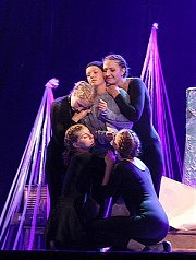 — На конкурс молодых режиссеров было подано 57 заявок, — говорит директор ТЮЗа Евгений Бубер. — Мы отобрали четыре из них, которые представляем на суд жюри как эскизы будущих постановок. Репетировали артисты нашего театра, намек на декорации сделали, исходя из наших небогатых технических возможностей. Каждому режиссеру дается полчаса, чтобы убедить в нужности своего проекта».
