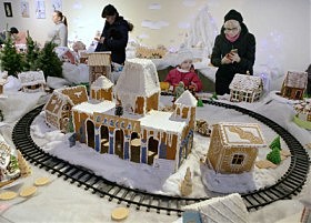 В арт-центре им. Александра Коробчинского все праздничные дни работала выставка-аукцион пряничных домиков. Глаза, как говорится, разбегались от украшенных вкусными деталями из шоколада и карамели домиков…