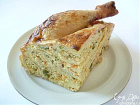 Курица — 1 шт. (около двух килограммов) Для фарша: мясо курицы, лук репчатый — 2 шт., морковь — 1 шт., творог — 150-200 г, сметана…