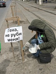 Участники акции приглашали прохожих подписывать письмо к городскому голове Труханову с призывом не проводить бездумную, по их мнению, реконструкцию Французского бульвара. После агитационной части акции ее участники приступили к окапыванию деревьев и их побелке.