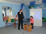 Ведущий специалист Раздельнянского межрайонного отдела Сергей Шморгал в доступной форме рассказал малышам об этих правилах, после чего дети активно участвовали в играх: «Огонь — друг, огонь — враг», «Вызов спасателей по телефону — 101». Малыши по очереди подходили к импровизированному телефону, набирали номер и сообщали условному диспетчеру пожарно-спасательной службы, что и где горит, свою фамилию, имя и адрес, причем все успешно справились со своей ролью. Кроме того, воспитанники детского сада с интересом посмотрели поучительный мультфильм об отважном спасателе-лисичке Фоксе и его помощнике — роботе Троте. Настоящий восторг у детей вызвало и разгадывание загадок на противопожарную тематику, которые загадывал им С. Шморгал. Ребята быстро и правильно справлялись с заданиями.