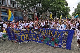 В Одессе прошел уже восьмой, ставший традиционным для мая, «Мегамарш в вышиванках», собравший около полутора тысяч участников. Кроме традиционных плакатов, участники несли транспарант «Одна єдина,…