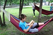 Книжная зона представляет собой площадку с гамаками и пледами и расположена в тени деревьев. Гостям предлагается большое разнообразие книг всех жанров, где каждый найдет что-то себе по вкусу.