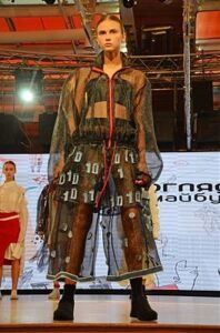 Открылся показ на подиуме «Садов Победы» экоколлекцией киевлянки Соломии Дубьянской «Забытье» — мотивы спиленных бревен на принтах и крупные деревянные аксессуары могут красиво смотреться лишь на юных моделях. «Заземление» принесло своему автору, киевлянке Вере Фатеевой, Гран-при — ей оплатят производство новой коллекции. Мотивы современных шифров рисуют историю самовыражения героини «Заземления» — исследовательницы и путешественницы.