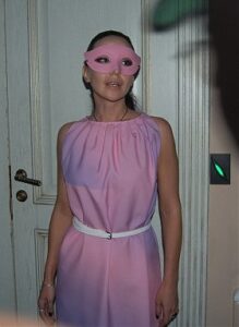 Пригласительные в виде маски (кто-то надел их на лицо, кто-то повязал на голову или на шею, наиболее скромные просто держали в руках), «таинственный» дресс-код, прохладительные напитки, закуски, музыка и огни — The Misteriage не оказался мистификацией. Цвет маски определял, в команду какого дизайнерского бренда попадает гость, — Dzhus, Gudu или Whatever. Гостей поочередно заводили в четыре комнаты, где испытывала творческие сомнения девушка-дизайнер, трудились швеи, изготавливали аксессуары, весело суетились модели и стилисты. А ближе к полуночи публике показали новую коллекцию сценической моды. Даже обидно, что не одесситы первыми до такого додумались, нам ведь не занимать ни умения шить, ни актерских способностей…