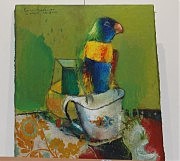 Готовясь встречать Год Петуха по восточному календарю, клуб поместил на самое видно место соответствующую картину с изображением красивой птицы. Остальные работы разных лет добавили жизнелюбивых и ироничных ноток в общую живописную симфонию.